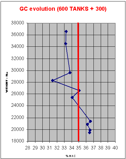 Here is typical CG evolution with fuel consumption.